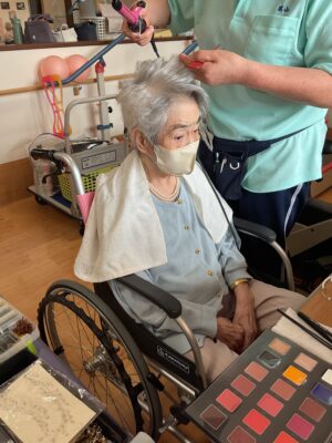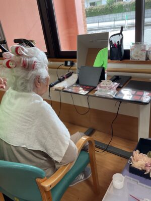 女性の方は敬老会の前に職員からお化粧をしてもらい、嬉しそうな表情でした✨✨