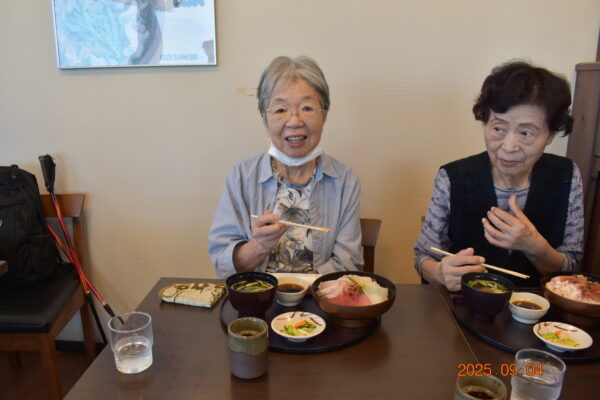 新鮮な海鮮丼でにこにこの笑顔ですね