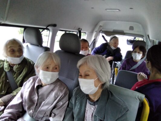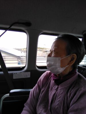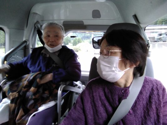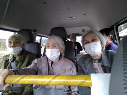 利用者の皆さんは馴染みのある景色に「ここ〇〇地区やにか!」「ここにはいつも白い旗を持っとる人が立ってた。」「トンネルのない頃はあの道通って街に出とったが!」等と地域のことを沢山話し、いきいきとした表情をされていました。