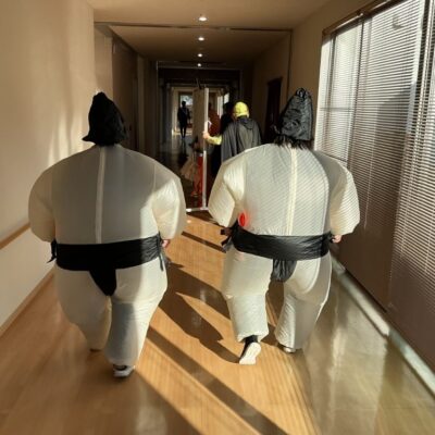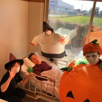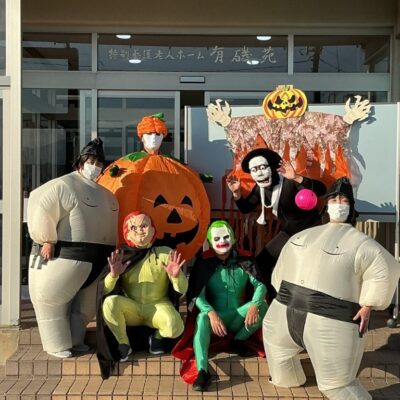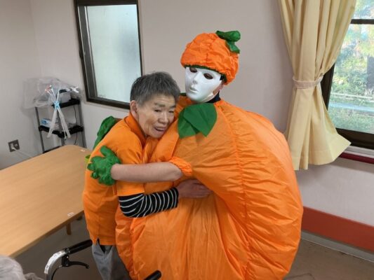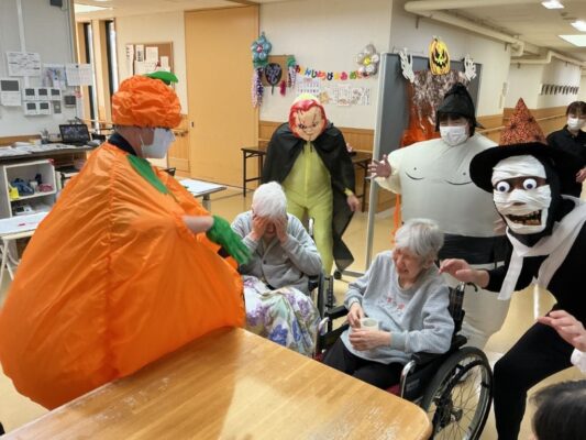 ハロウィンイベントとして仮装した職員がお菓子を配りながら施設内を回りました。