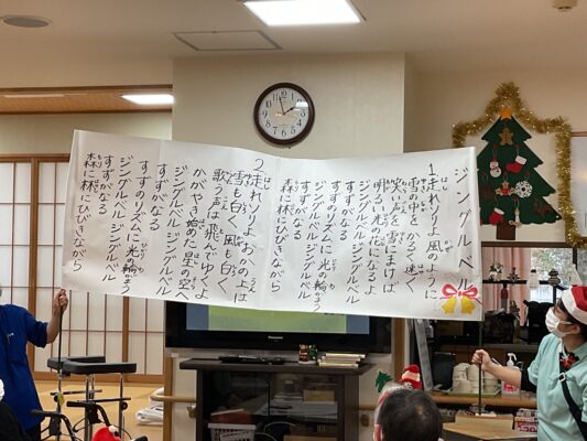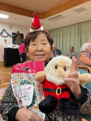 クリスマスにまつわる〇✕クイズや「ジングルベル」の歌を唄ったり、サンタさんからプレゼントをもらったりと楽しいひと時を過ごしました。