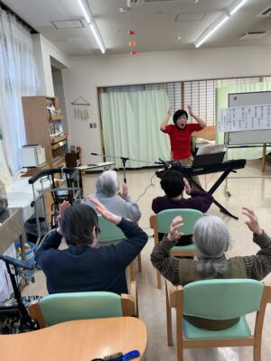 ‟歌と楽器で楽しく脳トレ♪”と題し、追分結さんをお招きして楽しい時間を過ごさせていただきました。
