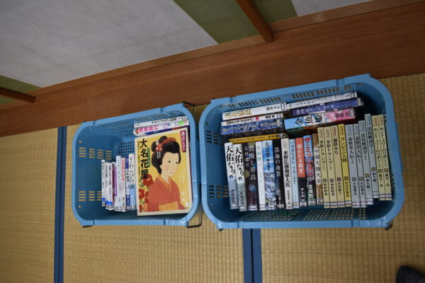 今まで入居されていた方が寄付された本と、朝日町図書館の協力で貸出ししていただいている100冊がいつでも読めるようになっています。