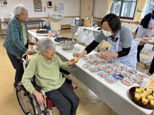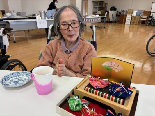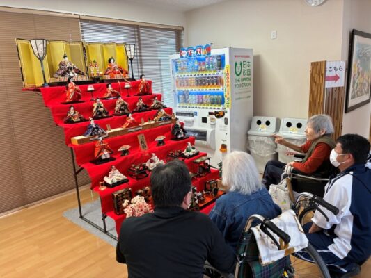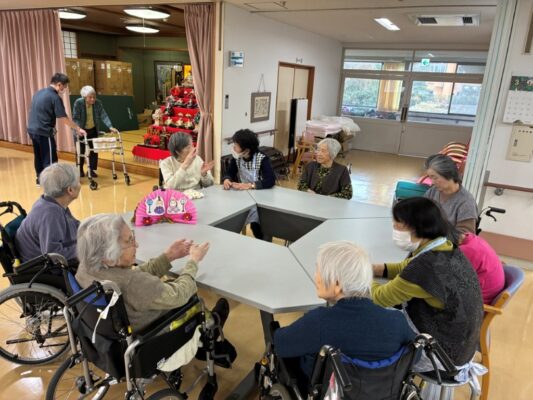 さくら餅作りを行った後、コーヒーやジュース、お菓子などを召し上がったり、人形と一緒に記念撮影を行うなど、穏やかな時間を過ごしていただきました。