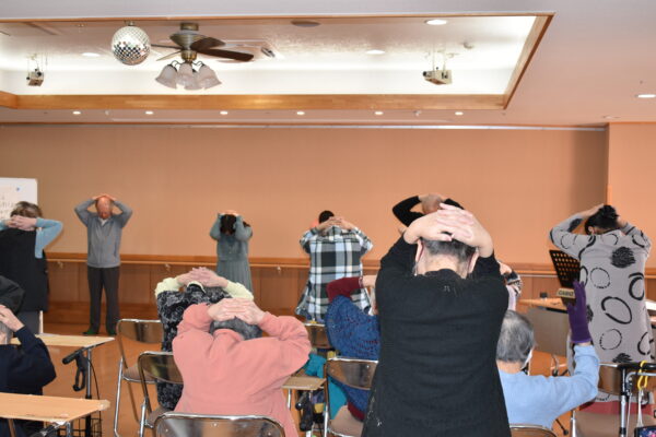背筋を伸ばす体操でも、いつもの健康体操とはちょっと違った体操でした。