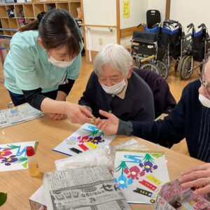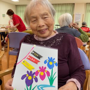 また、4月中旬に端午の節句に向け、こいのぼりと花菖蒲の作品作りをしました💕